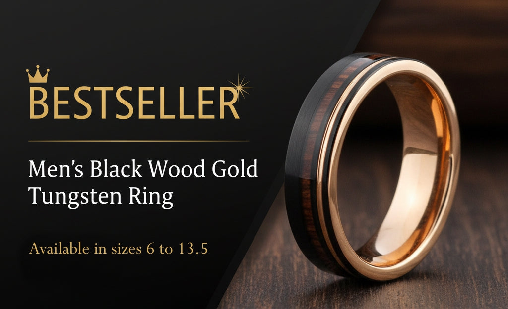 Men's Black Brushed Tungsten Ring with Offset Wood Inlay