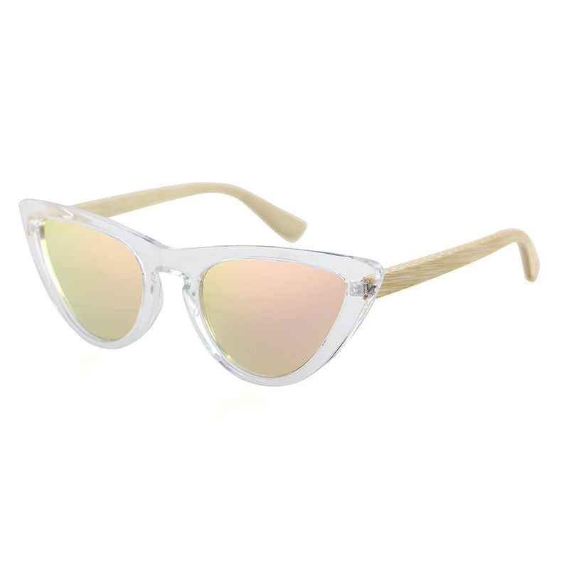 Featured here, our clear frame and bamboo arm with rose gold mirror lenses.