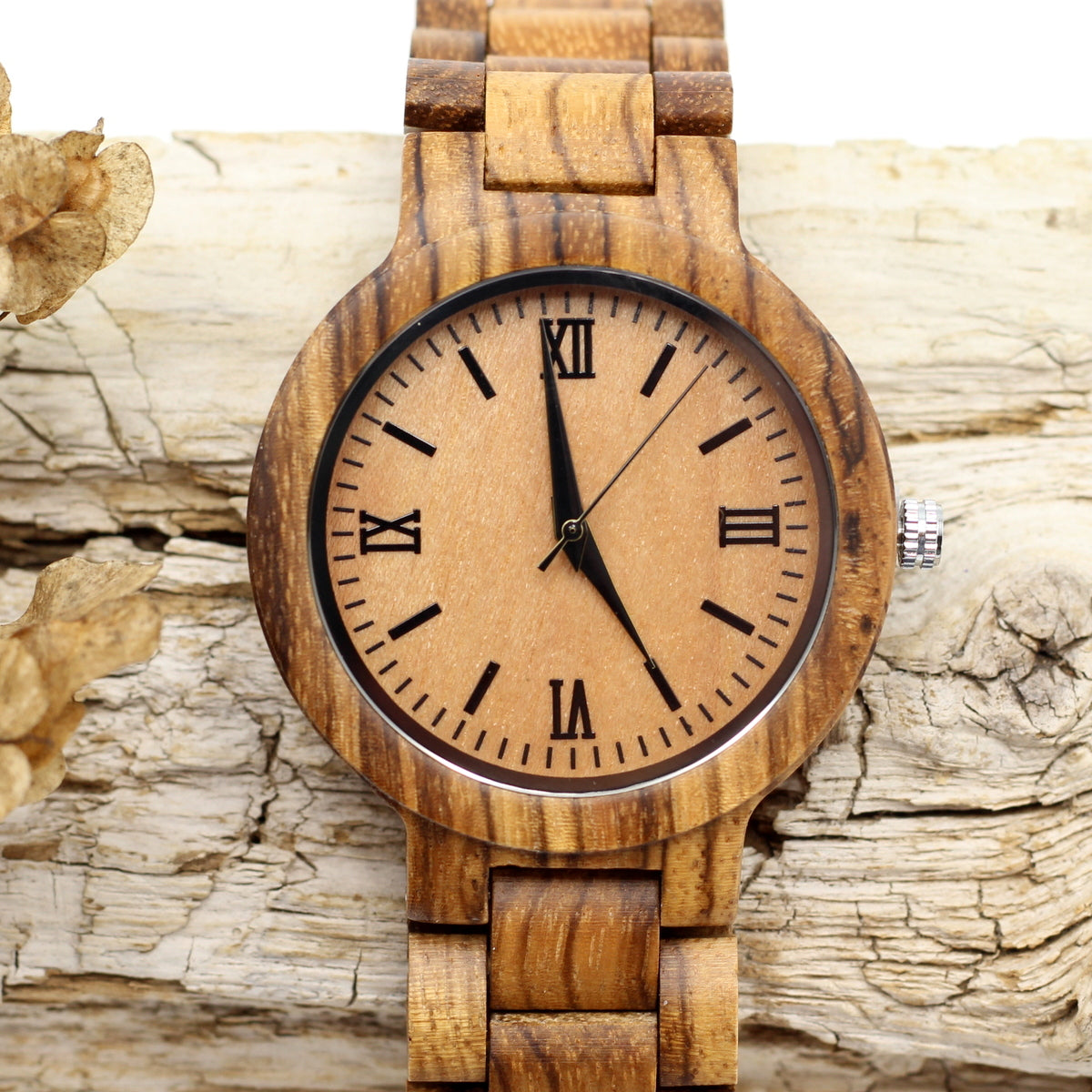 Our MANWOOD range features a solid wooden watch face with matching wooden link strap.
