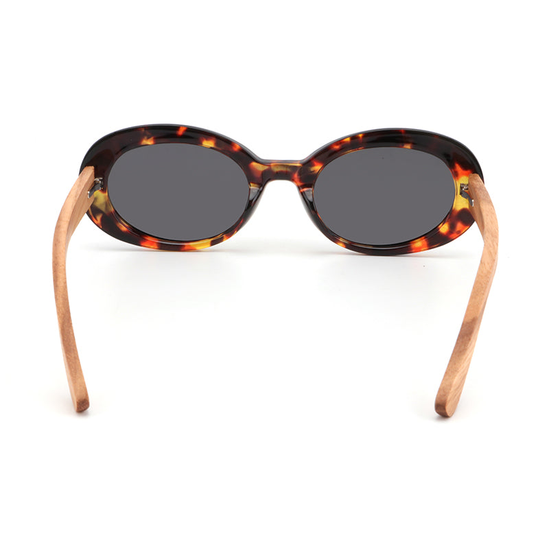 GABY BROWN TS Oval Chic Sunglasses Polarized Lens Wooden Arms