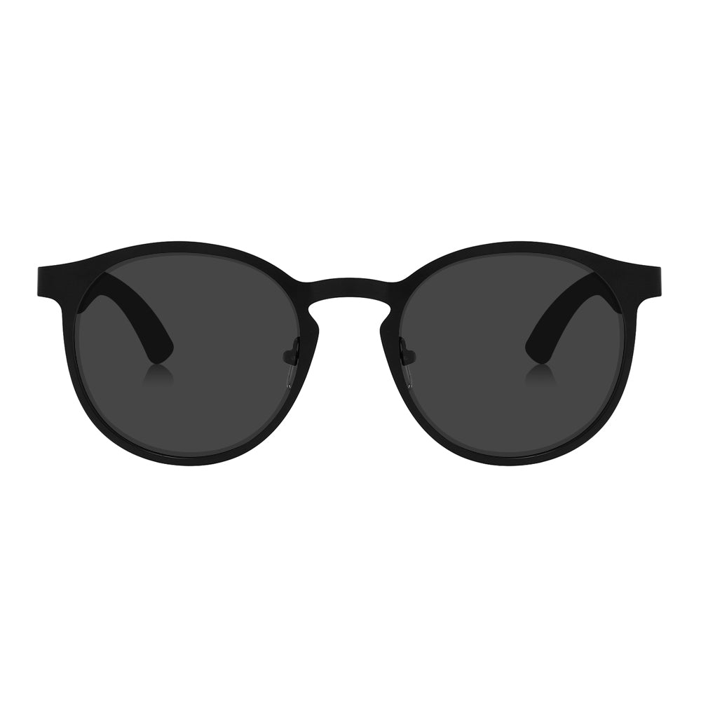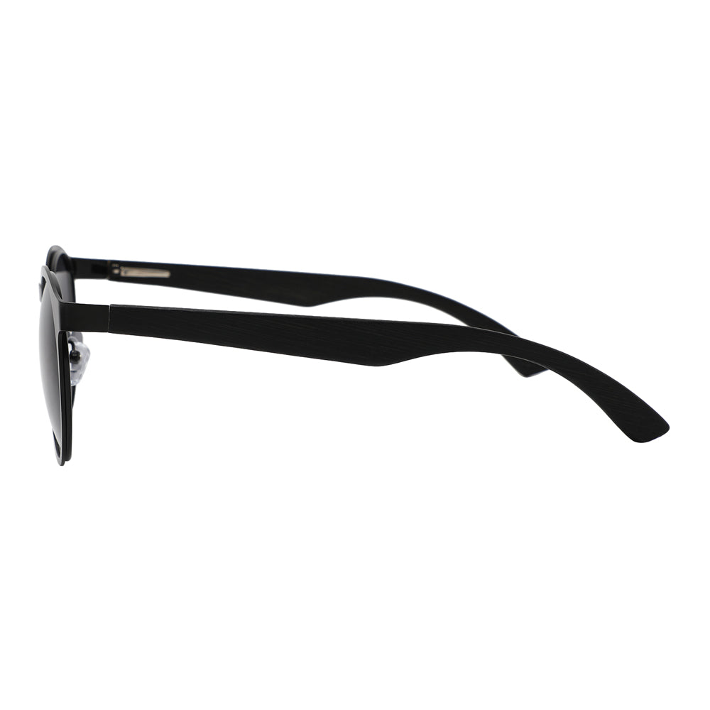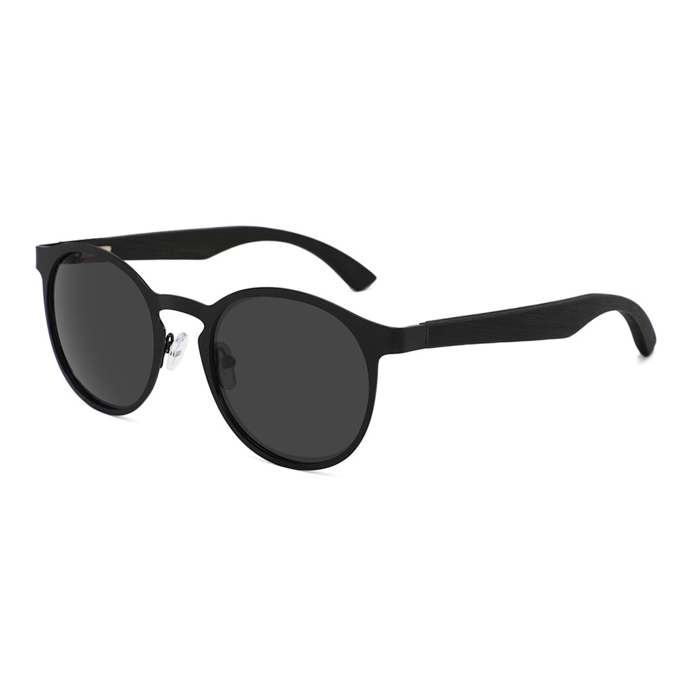 HUDSON BLACK Sunglasses Metal Frame Polarised Lens Wooden Arms