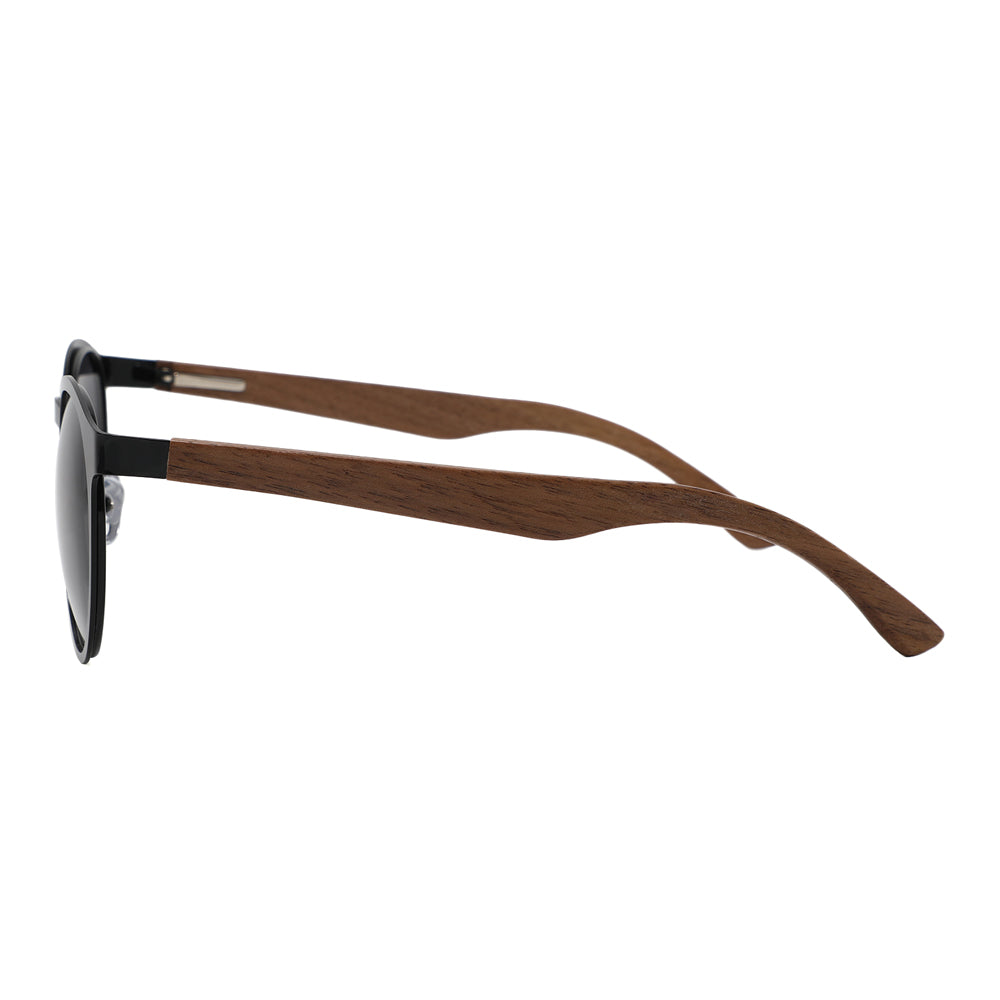 HUDSON NOIR Sunglasses Metal Frame Polarised Lens Wooden Arms