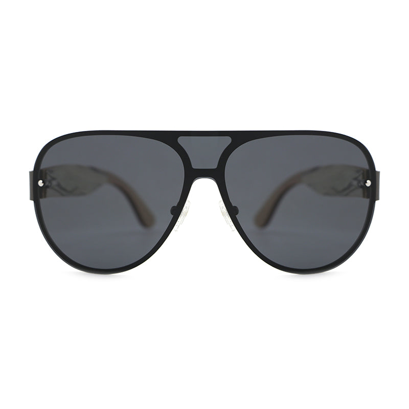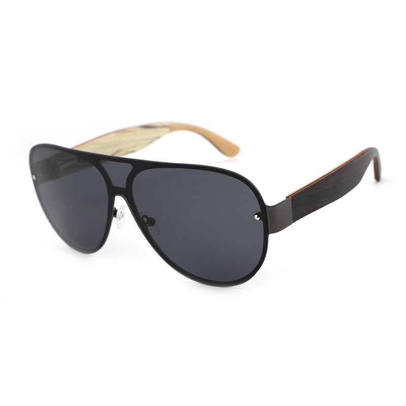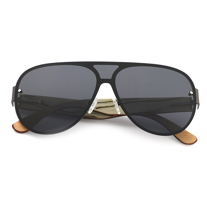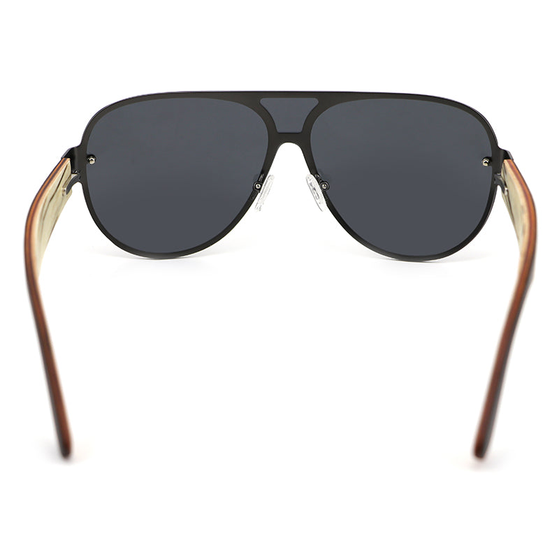 JAYSAM BLACK Men's Rimless Sunglasses Polarised Lens Wooden Arms