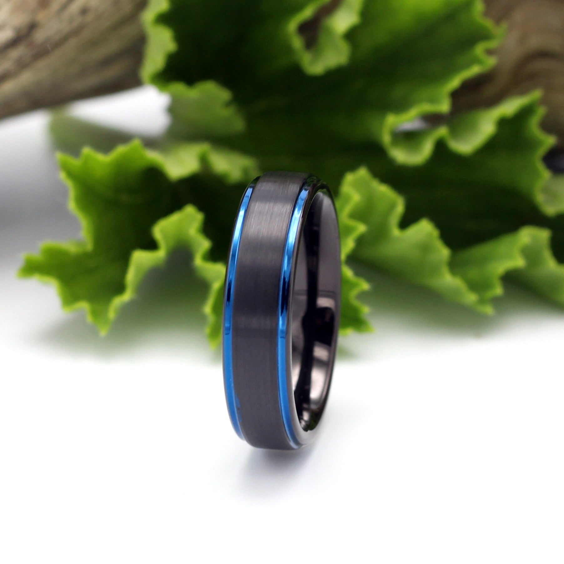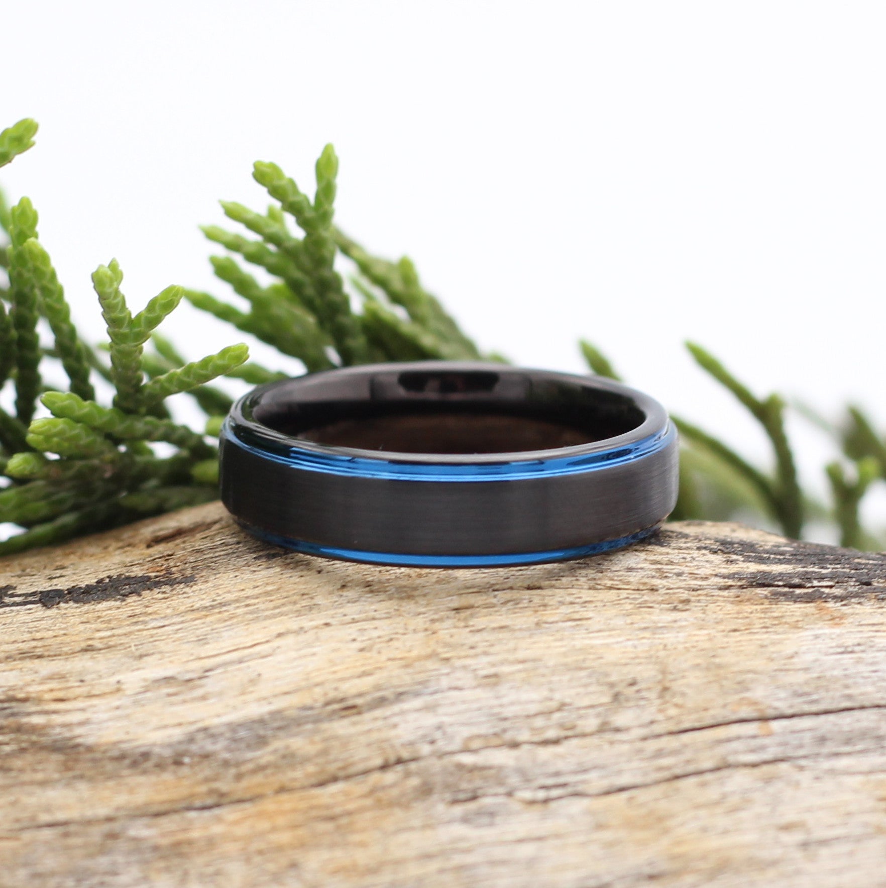 Men's Black Tungsten 6mm Ring with Blue Lines