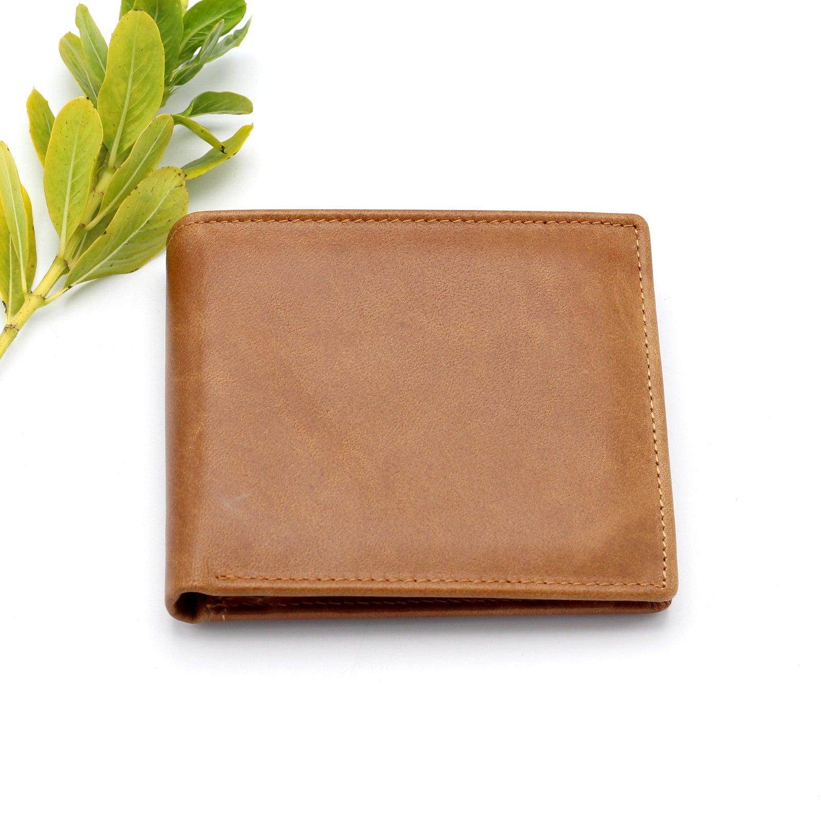 Men's Genuine Leather Wallet RFID Blocking TAN
