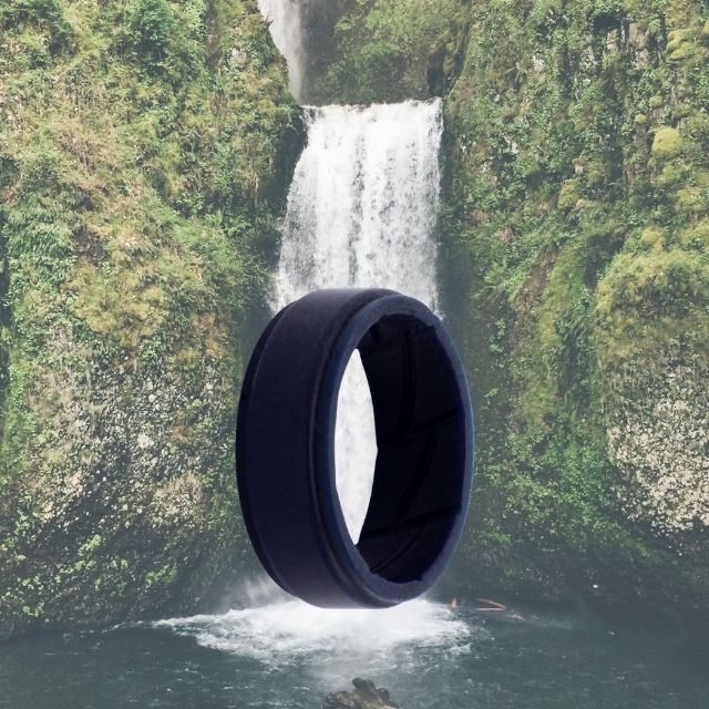 Men's Navy Silicone Ring 8mm Bevelled Edge