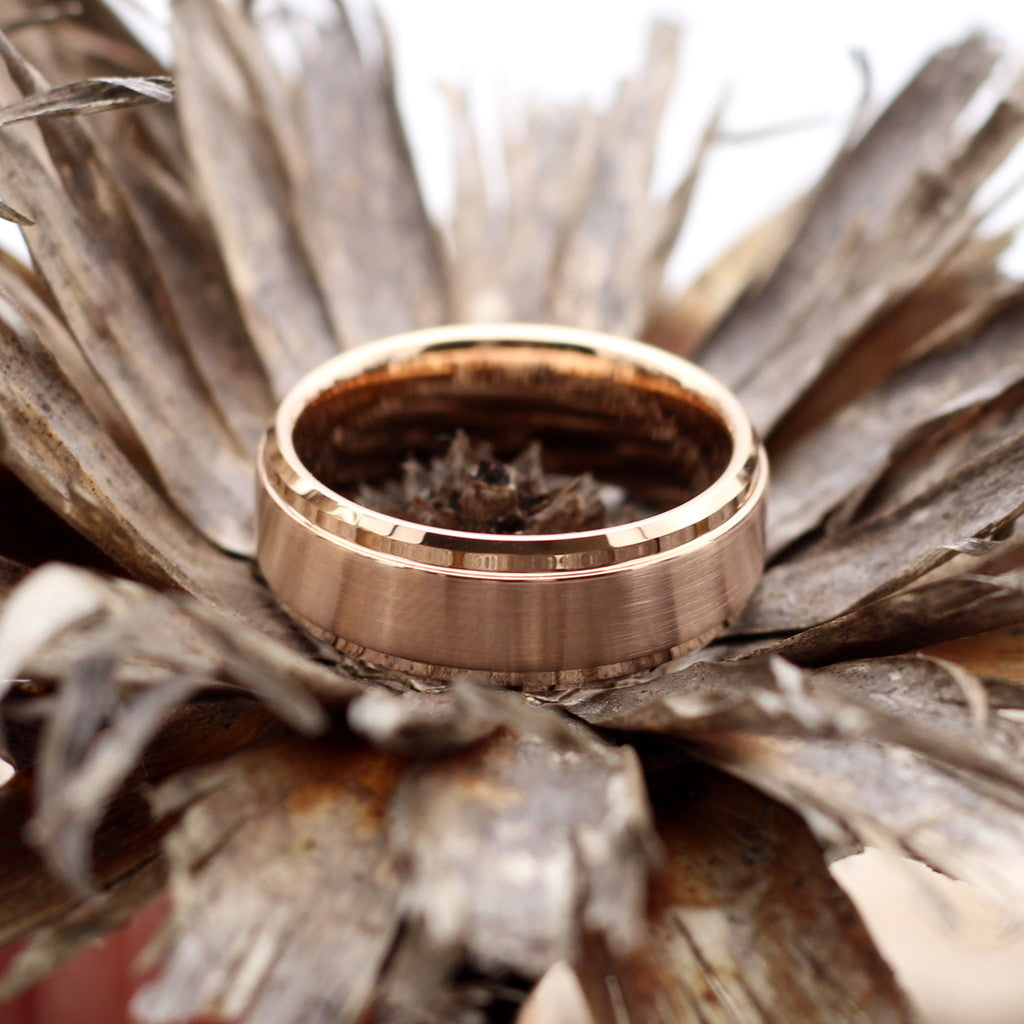 Men's Rose Gold Tungsten Ring with Stepped Edge