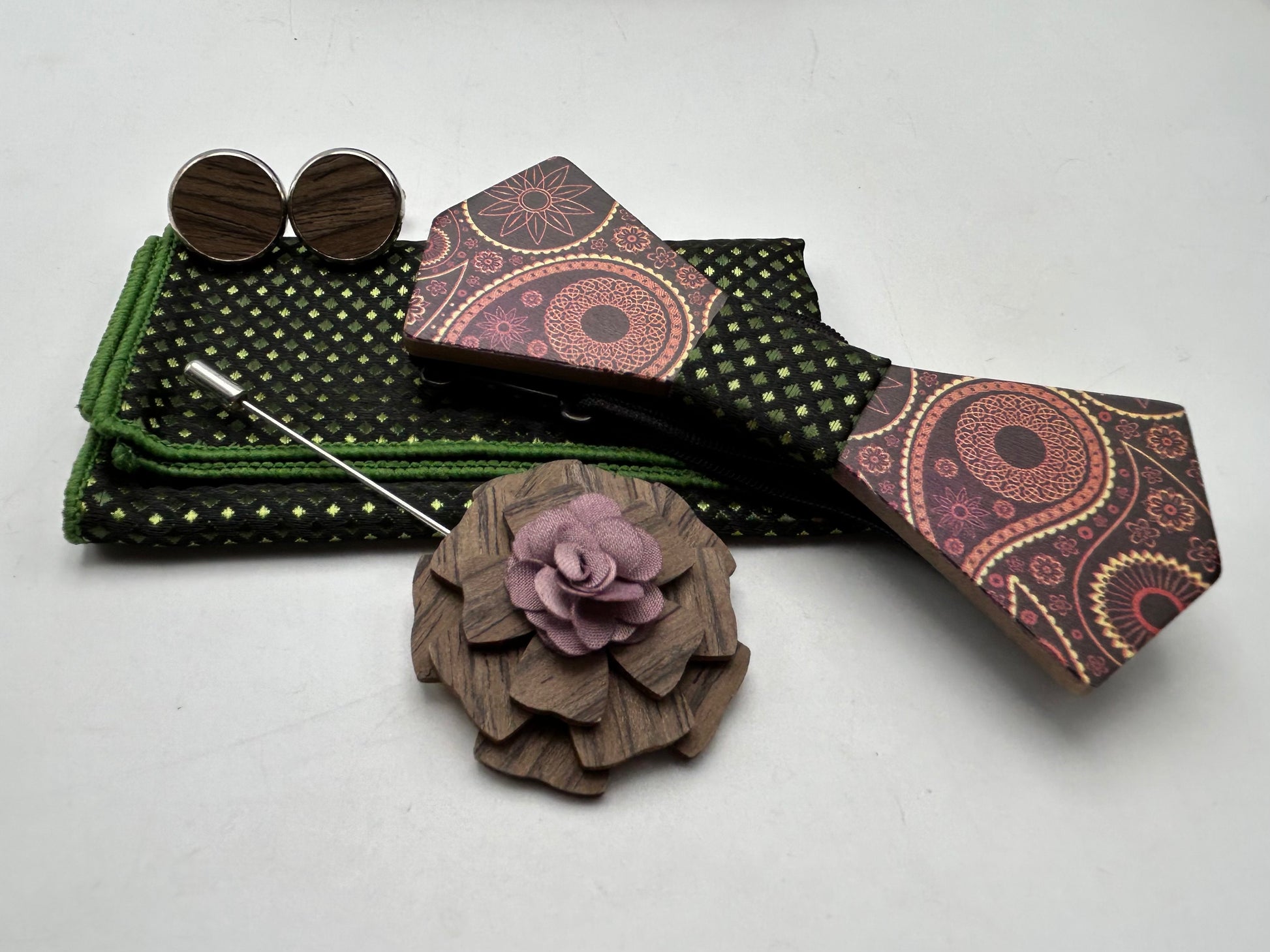 Our unique wooden bow-tie combo set is a must-have for the dapper gent.